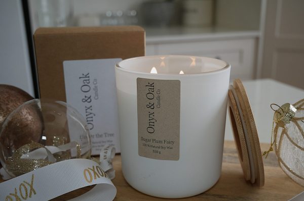 - Large 350g net of 100% Natural Soy Wax, double cotton/paper braided wicks, highest quality essential/fragrance oils, displayed in a matt white glass jar and a wooden lid