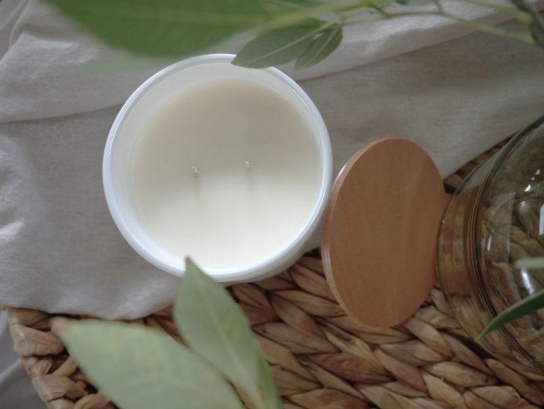 • Large 350g net of 100% Natural Soy Wax, double cotton/paper braided wicks, highest quality essential/fragrance oils, displayed in a matt white glass jar and a wooden lid